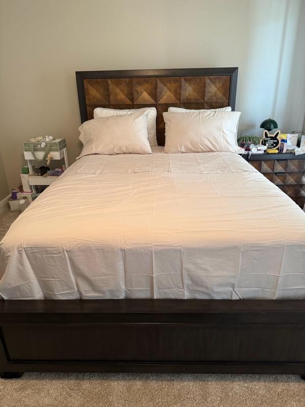 The cotton percale sheets are praised for being incredibly soft, breathable, and cooling, making them ideal for hot sleepers or warm climates. Customers highlight the sheets' durability, with the fabric holding up well through multiple washes without shrinking or pilling. The sheets have a crisp, yet relaxed feel that becomes even softer over time, and the deep pockets and snug fit of the fitted sheet keep the bedding in place. While some reviewers note that the sheets wrinkle easily, this does not significantly detract from their overall comfort and quality.
