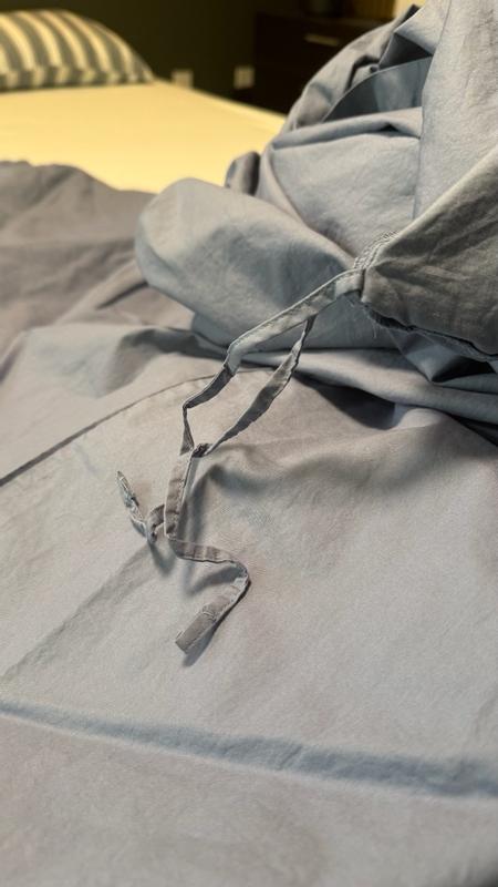 The duvet cover is made of high-quality, soft, and breathable cotton percale fabric. Customers appreciated the thoughtful design features like the corner ties and button closure. The neutral color options were also well-received for their versatility. While some found the fabric prone to wrinkling and the price point high, most reviewers were satisfied with the duvet cover's performance and would recommend it.