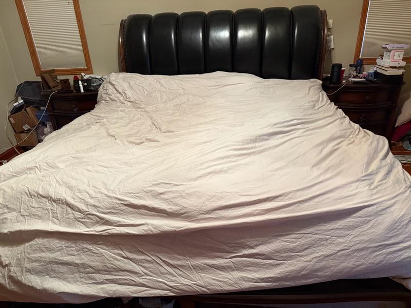 The duvet cover is made of high-quality, soft, and breathable cotton percale fabric. Customers appreciated the thoughtful design features like the corner ties and button closure. The neutral color options were also well-received for their versatility. While some found the fabric prone to wrinkling and the price point high, most reviewers were satisfied with the duvet cover's performance and would recommend it.