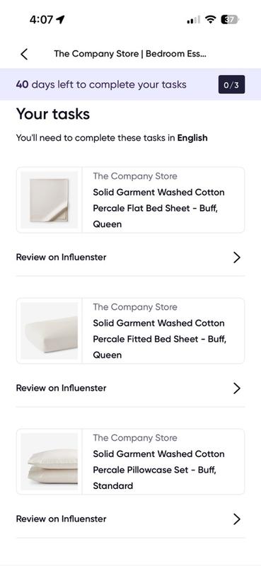 Thank you, The Company Store and Influenster, for sending me The Company Store Queen Size Solid Garment Washed Cotton Percale Flat Bed Sheet in Buff in trade for my candid review. I thought this sheet washed well, although it was left somewhat wrinkly, even though I plucked it promptly from a hot clothes dryer. The sheet felt a little rougher in texture than it felt prior to washing it, which is a little bewildering because I use gentle detergent and followed the care instructions to a tee. The sheet feels a little warm on, but I predict it will be perfect for fall and winter in my area of the country as warmth can be a welcome aspect of bedding on cold snowy days. The "buff" color is very nice. The sheet does, in fact, look pre-washed or "garment washed" as described. I found it very comfortable. I highly recommend this flat sheet from The Company Store. I will look for more in additional colors.