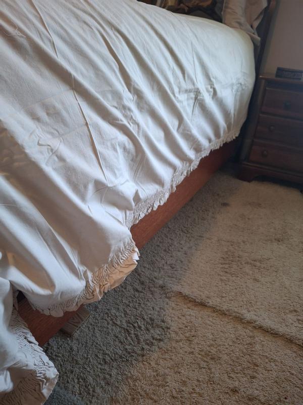 Customers overwhelmingly praise the ruffled duvet cover for its soft, breathable cotton percale fabric and elegant aesthetic. Reviewers consistently describe the ruffles as cute and sophisticated, noting they enhance bedroom decor beautifully. Many highlight the fabric's cool, breathable feel that promotes better sleep year-round, while others appreciate the corner ties that keep the duvet secure. Customers report the cover holds up well through washing and dries quickly. A few mention minor concerns about color or insertion difficulty, but these are isolated. Overall, most consider it a high-quality, durable investment worth the value.
