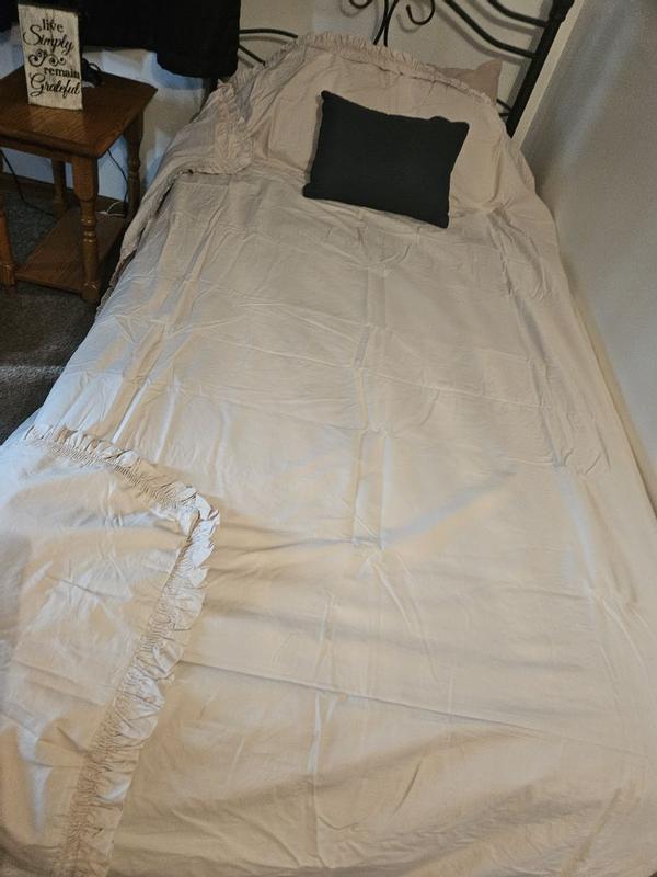 Solid Ruffle Garment Washed Cotton Percale Duvet Cover - Denim Blue, Twin/Twin XL
