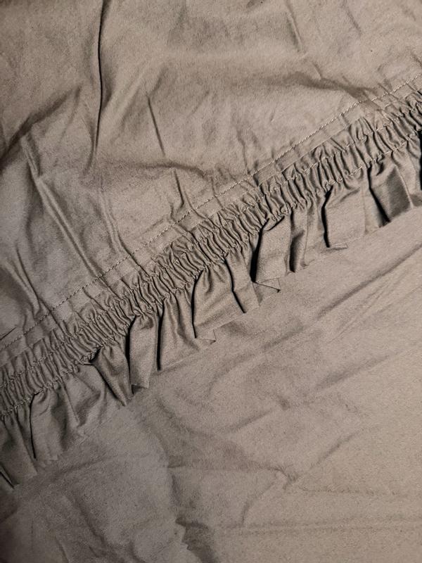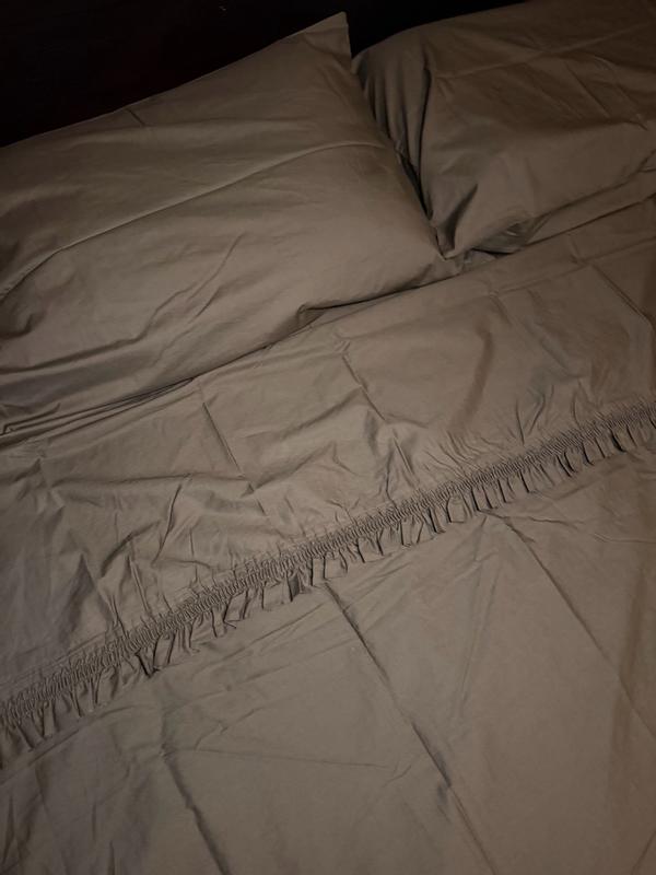 This Ruffle Sheet Set is woven of cool cotton percale, garment washed for lived-in softness, and features a delicately embellished trim. It comes in assorted colors and coordinates beautifully with our solid garment washed percale bed linens (sold separately).