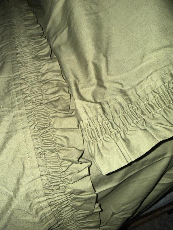 Customers overwhelmingly praise these sheets for their exceptional softness, cooling comfort, and elegant design. The garment-washed cotton feels luxurious and becomes even softer after washing, with reviewers highlighting the lightweight, breathable fabric that promotes restful sleep. The delicate ruffle trim adds feminine elegance, while deep pockets and labeled corners solve common frustrations. Customers emphasize superior quality, noting thick, durable construction with no pilling, shrinking, or fading. Most consider these the highest-quality sheets they've owned and express intent to repurchase.