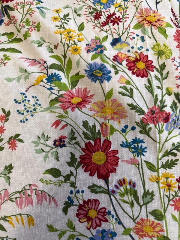 - Patterned with colorful wildflowers on a textural ground