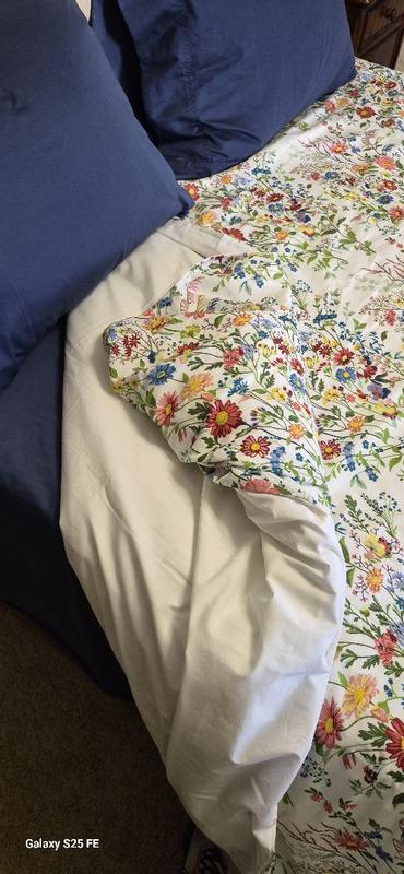 Our Springtime Bouquets Cotton Duvet Cover is based on a vintage pattern and set against a textural white cotton ground for a fresh-yet-familiar feel. It features a colorful field of wildflowers that come to life in joyful shades of pink, lilac, blue, fern green, butter yellow, and claret.