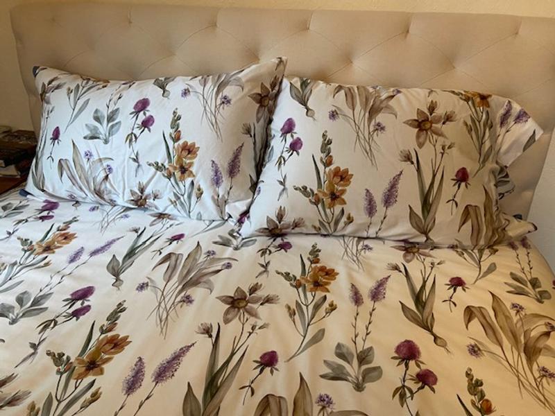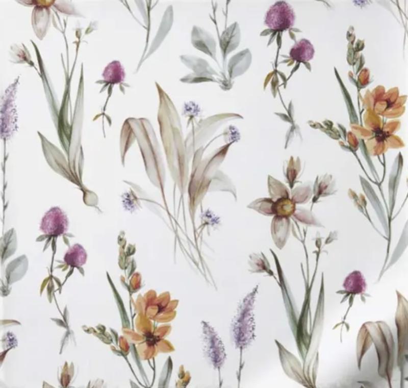 The Stem Florals Sateen Fitted Sheet features soft orange blooms, delicate purple thistle-like flowers, and pale pink and white daffodil-inspired blossoms, all beautifully accented by lush green foliage. This harmonious pattern is printed on a soft ivory background, creating a serene and sophisticated aesthetic for any bedroom. Crafted of buttery-soft and breathable sateen, this bedding collection has a subtle sheen and wrinkle-free finish and is perfect for all-season comfort.