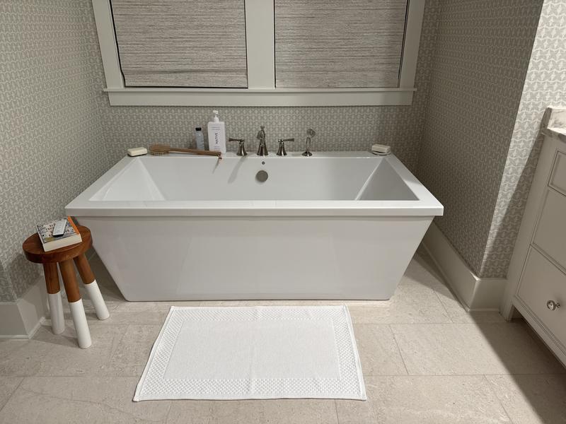 Our Sterling Cotton Bath Mat is loomed in Portugal of exceptionally soft and absorbent low-twist yarns and framed with a border of textural dots. A perfect accompaniment to your morning and evening routines, this beloved bath mat is more opulent than ever.
