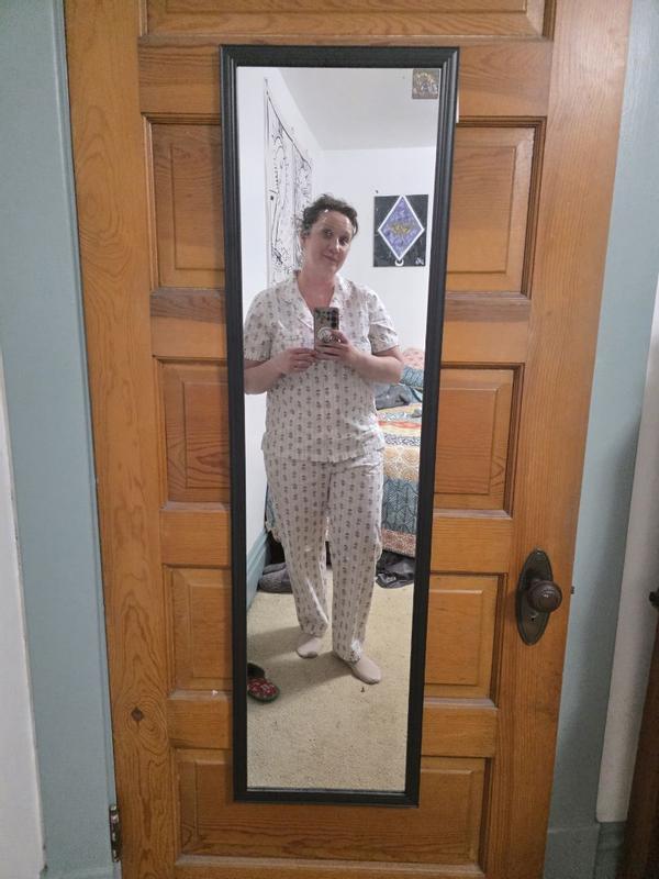 Printed Poplin Women's Short Sleeve Button-Down Pajama Set - Cottage Stripe, XXL