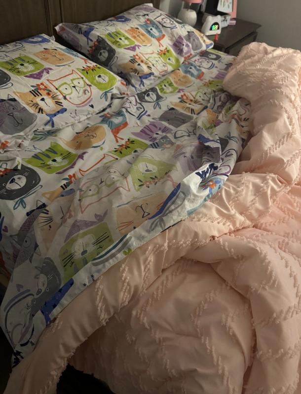 Customers overwhelmingly praise these cat-themed sheets for vibrant, whimsical designs that bring joy to bedrooms and exceptional comfort. Reviewers consistently describe the organic cotton fabric as soft, crisp, and cooling—ideal for warm climates—with a lightweight yet cozy feel that improves with washing. Many highlight the high-quality construction, noting the sheets hold color and shape beautifully through multiple washes while maintaining softness with minimal wrinkling. The playful, colorful patterns appeal to both children and adult cat lovers, with customers appreciating the nostalgic aesthetic. A few note the fabric feels slightly rough initially, though most expect softening with additional washes. Overall, reviewers enthusiastically recommend these sheets for their delightful design and exceptional quality.