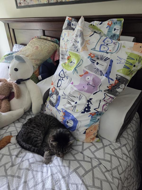 Gussied up with bows, eyeglasses, scarves, and flowers, the stylish cats on these printed cotton percale pillowcases are dressed to the nines—maybe even the tens! Based on original artwork, these friendly felines brighten the bed in cheerful shades of pink, turquoise, orange, blue and gray on a white ground. Sewn of organic cotton percale, this earth-friendly collection has a cool, crisp hand that gets better with every wash.
