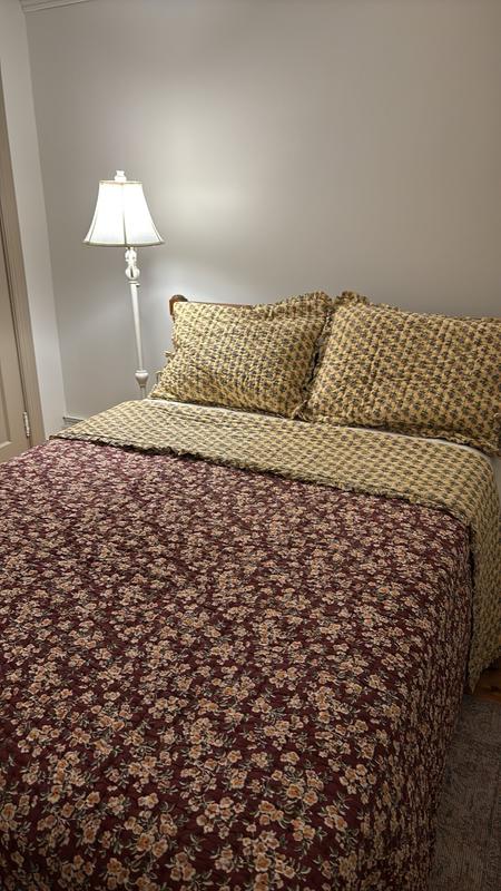This whole-cloth Suhana Reversible Quilted Sham is framed with a complementary printed ruffle border and showcases vintage florals in your choice of colors. It coordinates with our Suhana Garment-Washed Sheets and Quilt (all sold separately). Handcrafted by skilled artisans and washed for lived-in softness, it's as comfortable as it is beautiful.