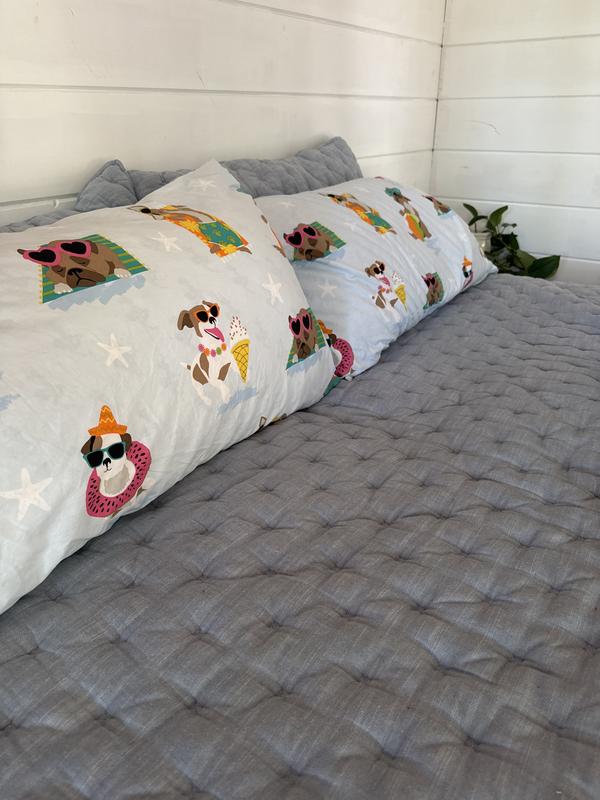 Set sail for summer with our new signature percale bed sheet set, offered in your choice of coastal-chic prints: sailboats and lighthouses, whimsical pink flamingos, or dogs chilling out on the beach. These original designs are reproduced on cool, crisp cotton percale.