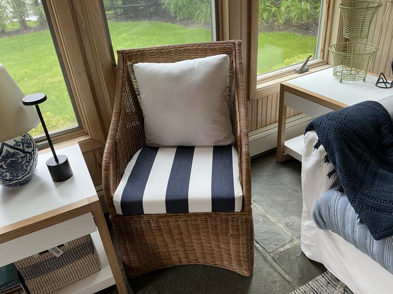 - Striped cushions are “flow matched” ensuring the stripes line up through the piping and the front of the cushion