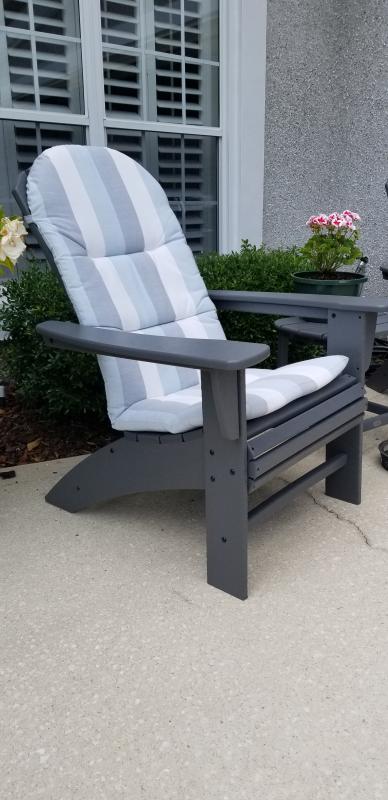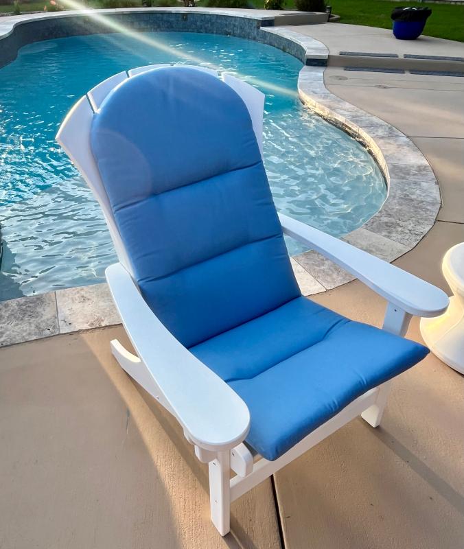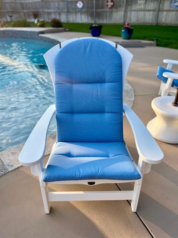 Our new and improved Sunbrella® outdoor Adirondack chair cushion is designed for extra comfort. We believe that you should enjoy the same comfort and well-appointed style in your outdoor living spaces as you do in your home. Upholstered in high-performance Sunbrella® fabric to resist stains, fading, water, mold, and mildew. Each cushion incorporates high-density foam encased in layers of densified polyester, and is designed to live outdoors for years to come.