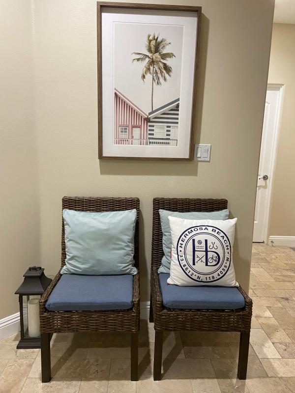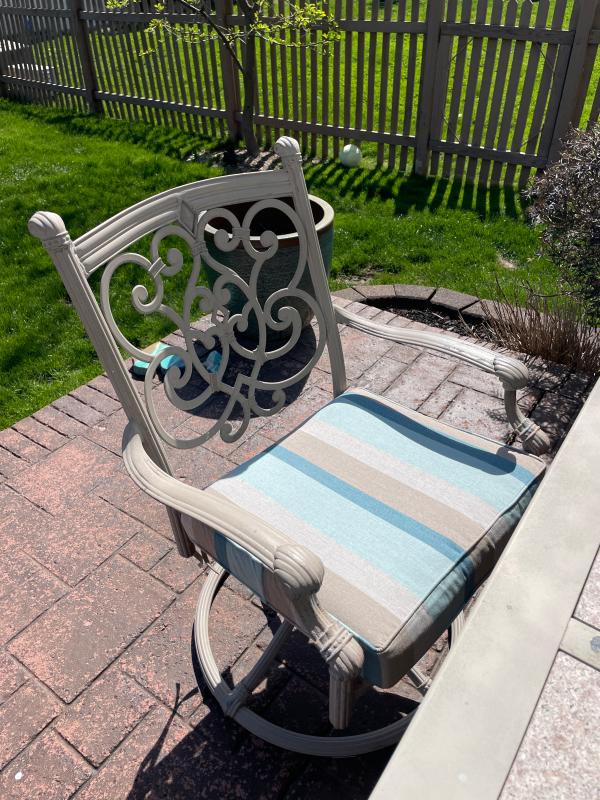 - Striped cushions are “flow matched” ensuring the stripes line up through the piping and the front of the cushion