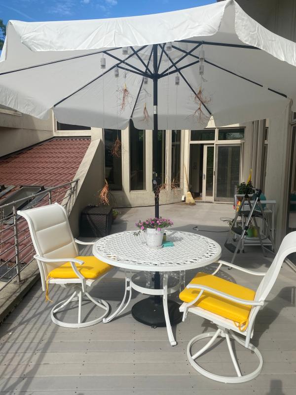 - Though water resistant, for best results stow away Sunbrella® cushions when it rains