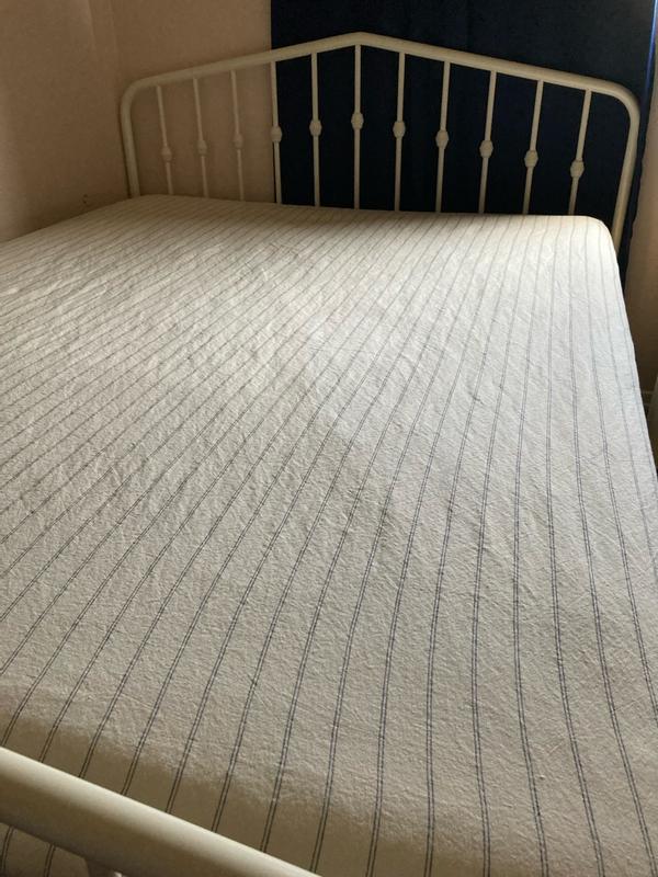 Tailored Stripes and Plaids Premium Breathable Washed Linen Cotton Fitted Bed Sheet - Stripe Dark Olive, Twin