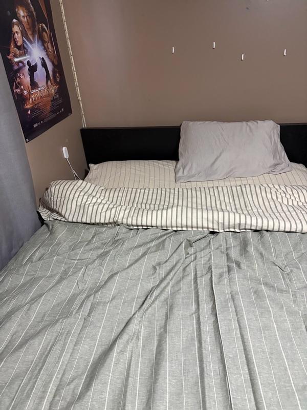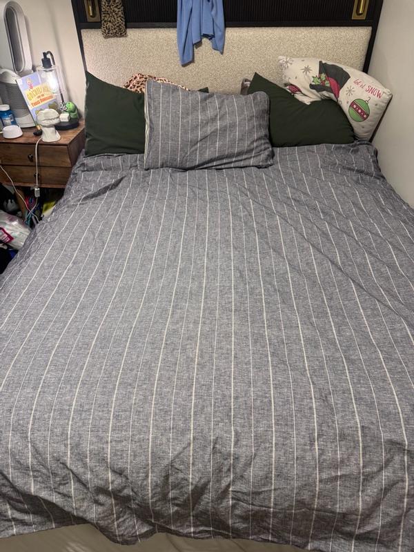Tailored Stripes Premium Breathable Washed Linen Cotton Reversible Duvet Cover - Wide Stripe Deep Navy, Twin/Twin XL
