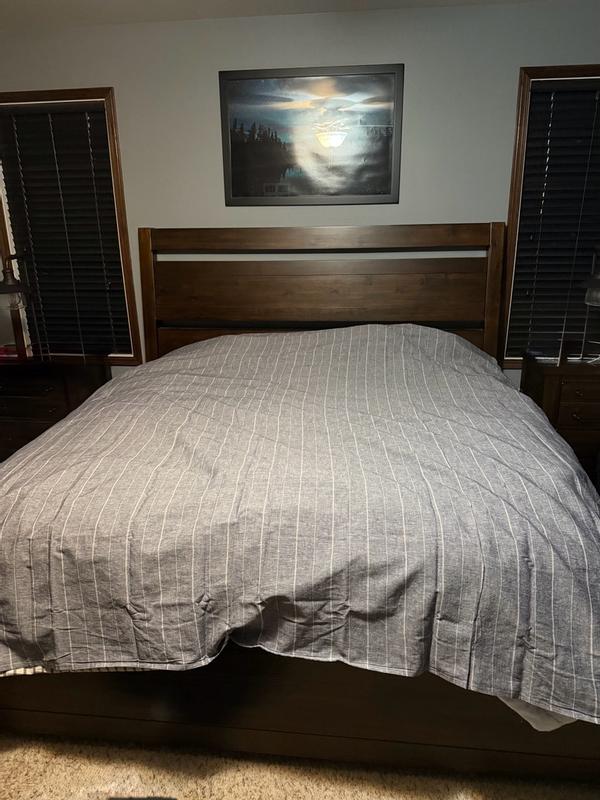 Tailored Stripes Premium Breathable Washed Linen Cotton Reversible Duvet Cover - Wide Stripe Deep Navy, Twin/Twin XL