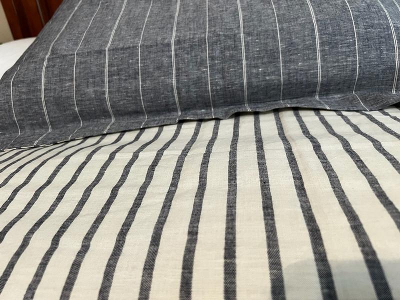 This Tailored Stripes linen and cotton reversible duvet cover is an all-time favorite thanks to classic stripes and a soft, garment-washed feel. It's crafted of yarn-dyed cotton and linen and reverses with a contrast-striped backing for twice the look. Coordinates with our Legends Hotel™ Washed Linen Solid, Washed Yarn-Dyed Linen Cotton Stripe, and Windowpane sheets (sold separately).