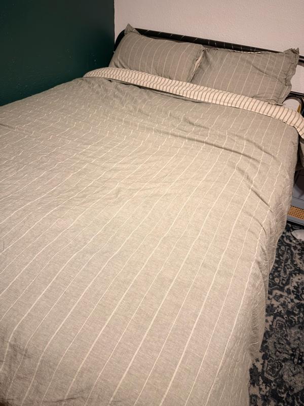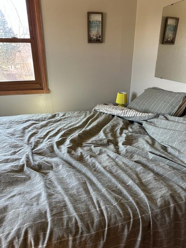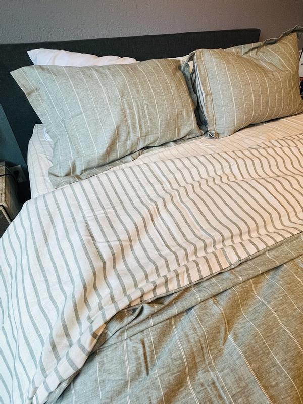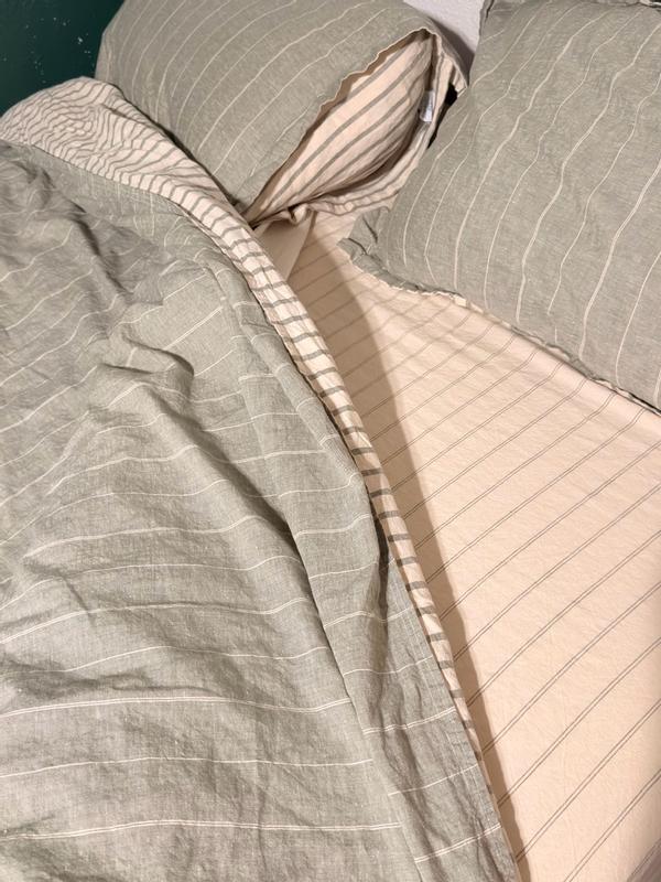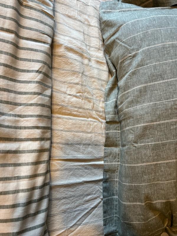 This Tailored Stripes linen and cotton reversible duvet cover is an all-time favorite thanks to classic stripes and a soft, garment-washed feel. It's crafted of yarn-dyed cotton and linen and reverses with a contrast-striped backing for twice the look. Coordinates with our Legends Hotel™ Washed Linen Solid, Washed Yarn-Dyed Linen Cotton Stripe, and Windowpane sheets (sold separately).