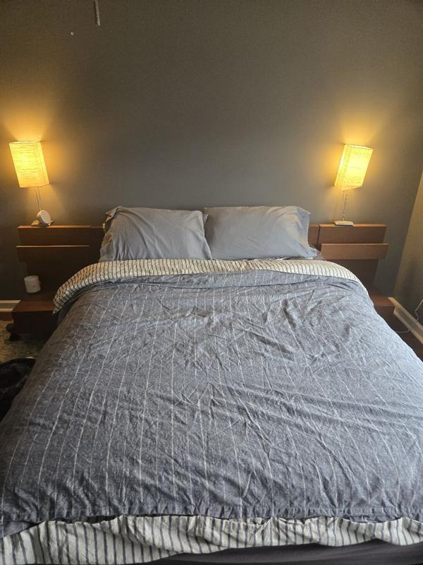 Tailored Stripes Premium Breathable Washed Linen Cotton Reversible Duvet Cover - Wide Stripe Deep Navy, Twin/Twin XL