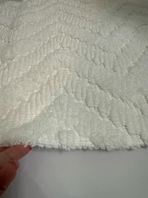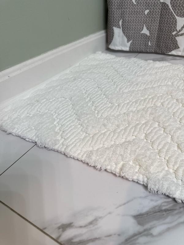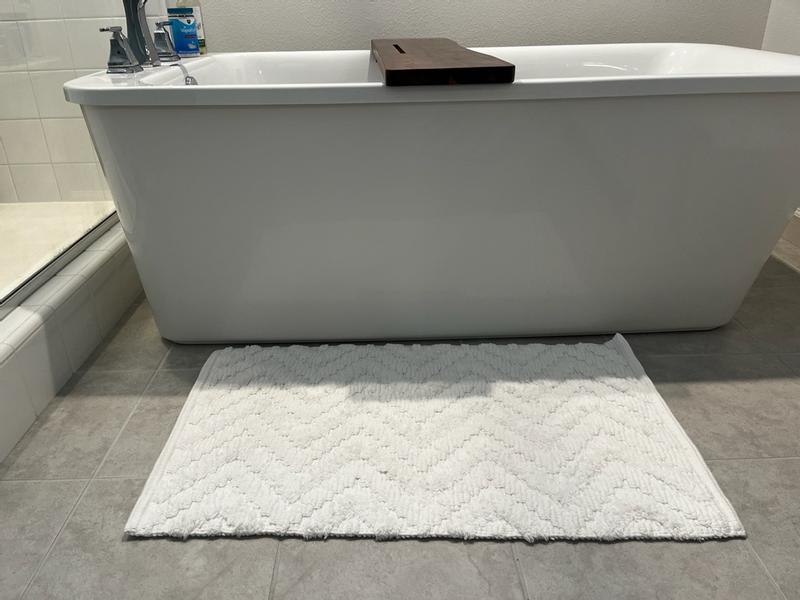 The bath rug is described as thick, plush, and incredibly soft, providing a spa-like experience. Customers praise its high quality, luxurious feel, and superior absorbency. The rug is noted for its durable construction, washing well without shedding or pilling. The subtle chevron pattern is widely appreciated for its classic, versatile look. While a few customers mentioned minor issues with slippage, the overall consensus is that this is a top-notch bath rug that delivers exceptional value.