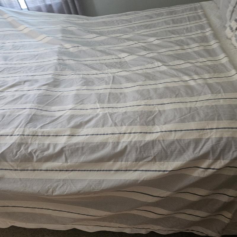 The duvet cover is described as soft, comfortable, and well-made, with a nice design and color. Customers appreciated the quality of the fabric, the ease of care, and the secure interior ties. However, some customers were disappointed with the color being different from the online depiction, the fabric being too thin or rough, and the duvet cover being extremely wrinkly even after washing and ironing. Additionally, some noted that the duvet cover did not fit their comforter properly.