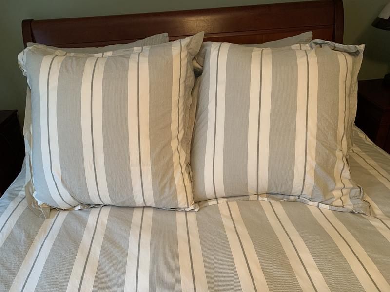 Inspired by utilitarian classics, this crisp yarn-dyed cotton percale sham is woven in Portugal. This heirloom look will keep getting better, wash after wash, is available in your choice of classic colorways and the cotton percale is great for year-round use.