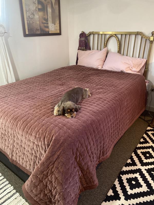 The velvet quilt is described as a high-quality, luxurious product that many customers find soft, plush, and warm. Reviewers praise its generous size and note that it washes well and retains its quality over time. However, some customers were disappointed with the color, finding it to be more muted than expected. A few also felt the quilt was overpriced for the quality.