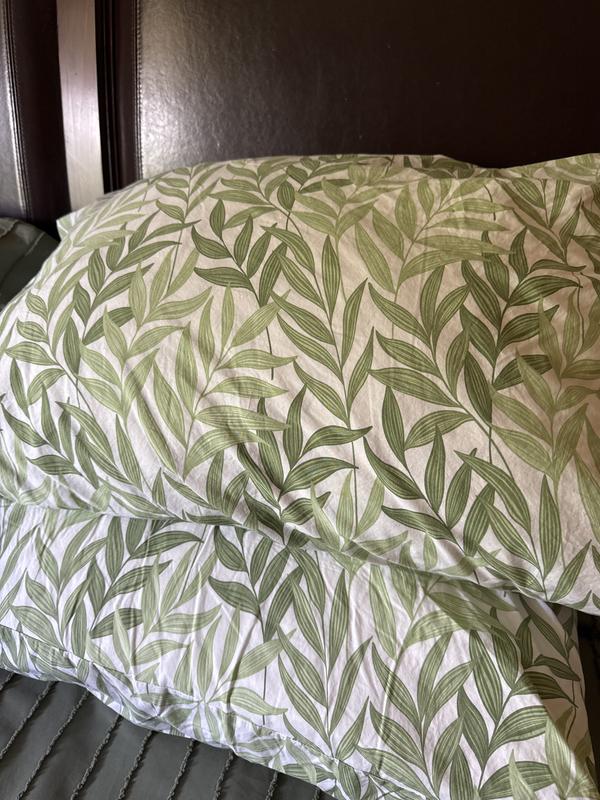 Our Tulum Leaf Print Cotton Percale Pillowcase Sets are patterned with lush, verdant fronds for a tropical, vacation-like vibe. Hued in soft shades of olive, celadon and palm green on a pure white ground, this original print brings a vibrant yet relaxed energy to the bed. Our breathable percale bedding collection is an excellent choice for year-round use and hot sleepers.