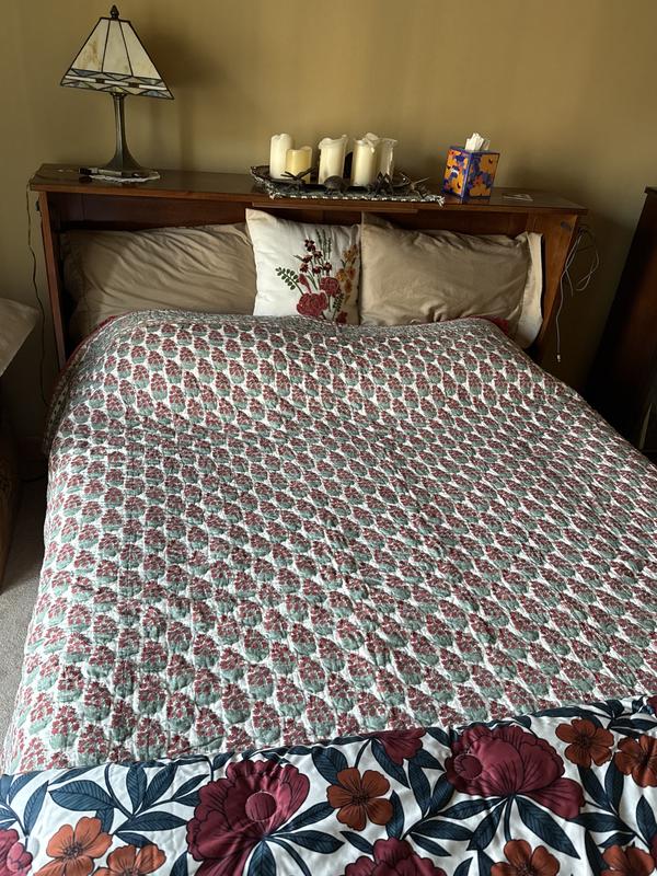 An elegant addition to your bed, this VILLA D’ASCOLI Reversible Quilt showcases a meticulously crafted floral sprig motif, blooming in rich shades of red and green framed by a sophisticated ornamental border. On the reverse, a delicate trailing rose pattern provides a versatile and enchanting alternative. Perfect for layering or as a striking statement piece, this quilt coordinates beautifully with our sheet sets, letting you create a look that fits your personal style. Handcrafted by skilled artisans and washed for lived-in softness, this quilt is as comfortable as it is beautiful. Part of the VILLA D’ASCOLI x The Company Store collection.