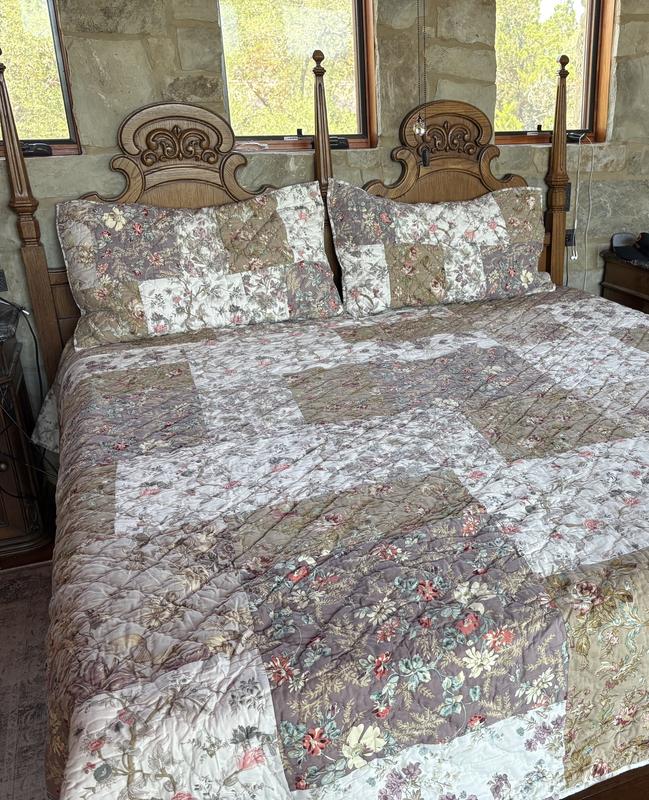 With its montage of pretty florals, our vintage-inspired Flora Patchwork Quilt evokes the look of a cherished heirloom handed down for generations. Its antique appeal is highlighted by the color palette—softly faded hues that range from mauve, pale pink, and burgundy to ivory, celadon, and butter yellow. Handcrafted by skilled artisans and washed for lived-in softness, so its as comfortable as it is beautiful.