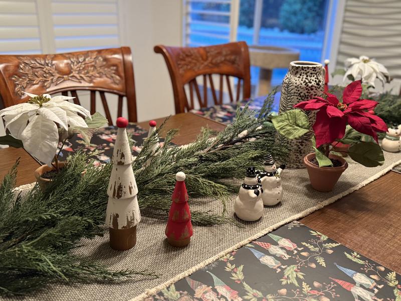 This set includes nine vintage-inspired painted wood trees in varying heights with natural wood bases, so you can create your own Christmas village. They're painted red, green, or white with contrasting ball tops.