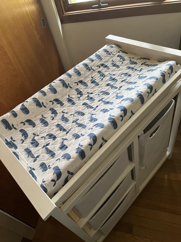 Featuring a pod of friendly whales, our changing pad cover is crafted from certified organic cotton in a lightly quilted design, providing a super-soft, comfy surface for your baby during changing time.