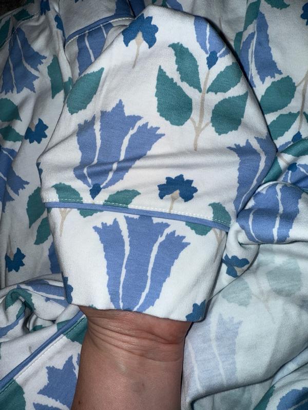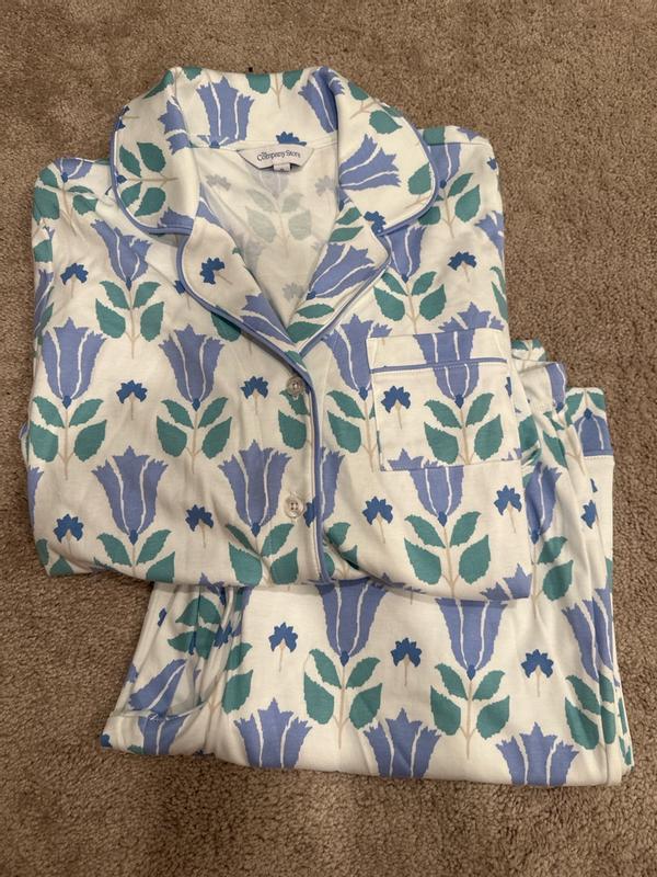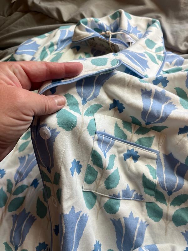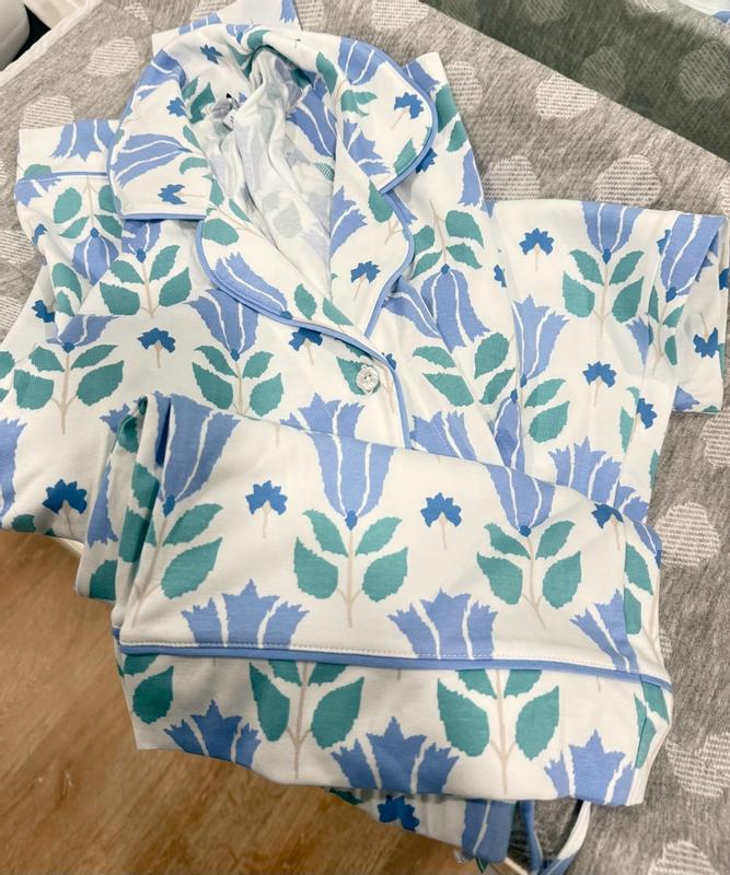 The pajamas are praised for their exceptional quality and comfort. Customers highlight the softness and breathability of the 100% Peruvian cotton fabric, which is described as silky, luxurious, and durable. The thoughtful design details, such as pearlized buttons, drawstring waists, and cuffed bottoms, are appreciated. The pajamas are reported to have a relaxed yet flattering fit that allows for easy movement, and the vibrant, summery prints hold up well in the wash. Overall, the pajamas are considered an excellent value and a customer favorite, with only minor criticism about the pants being slightly long.