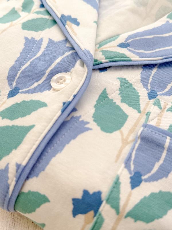 Printed Peruvian Cotton Women's Button-Down Pajama Set - Alipore Blue, XXL
