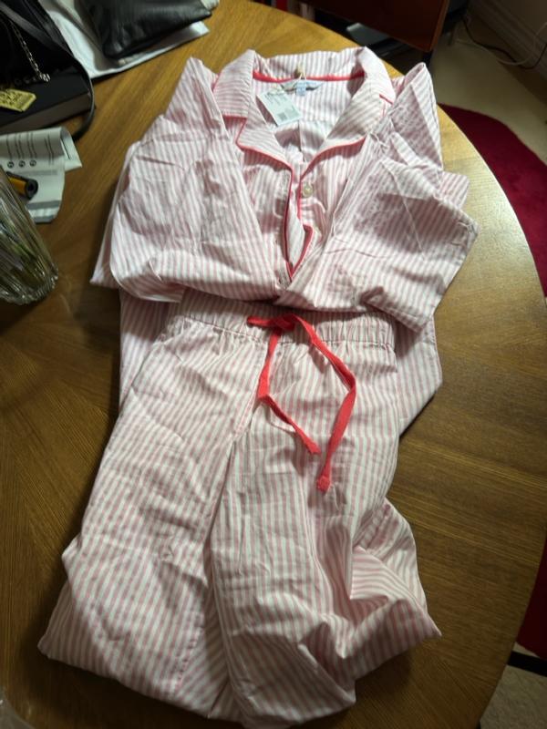 Printed Poplin Women's Button-Down Pajama Set - Blush Stripe, XS